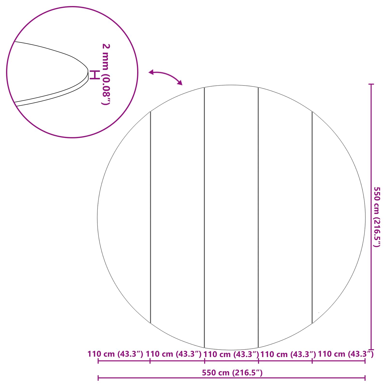 - Üldmõõtmed: 550 x 550 x 0,2 cm (P x L x K)