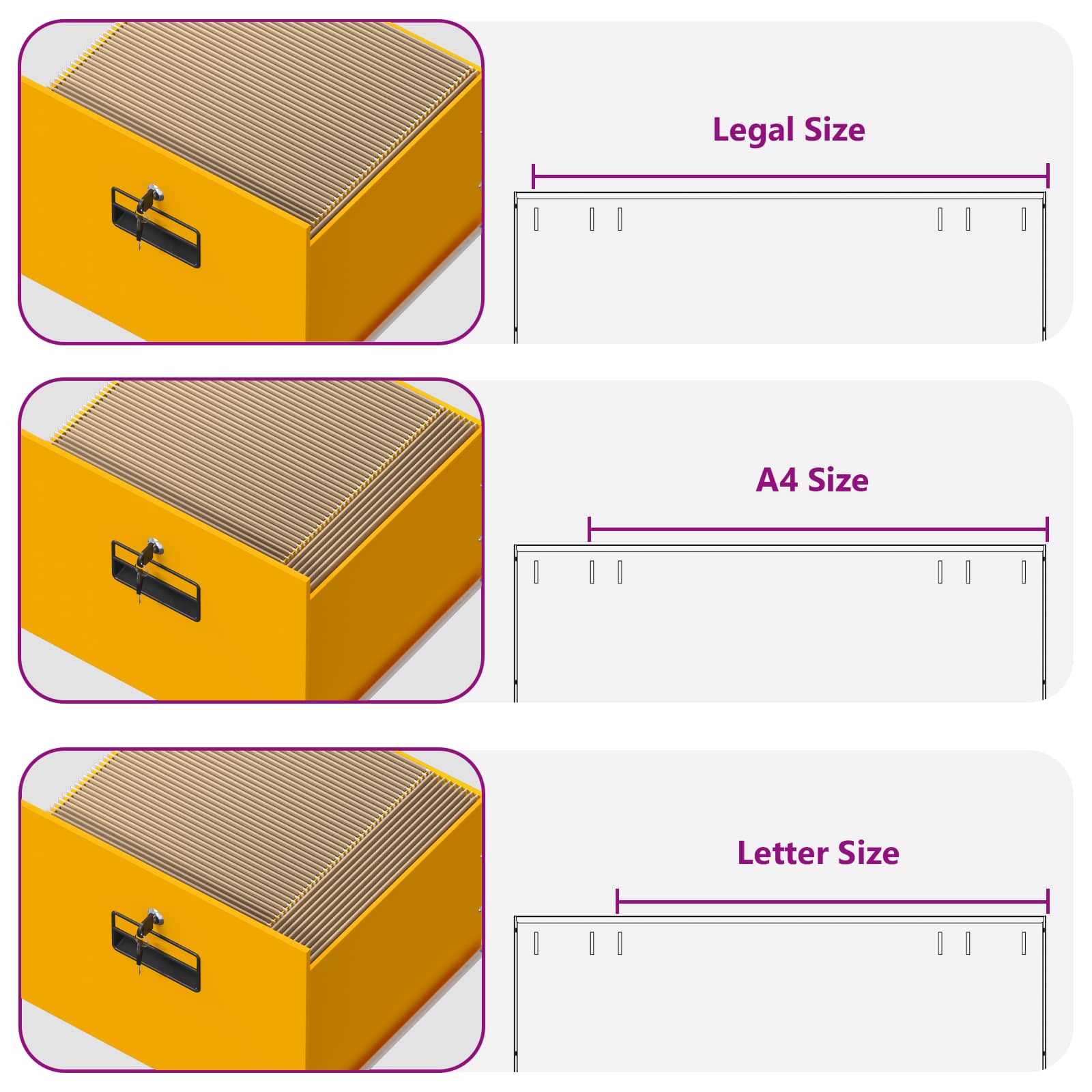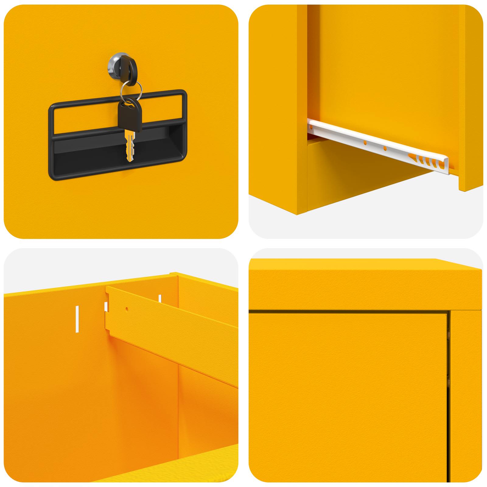 - Äärmiselt funktsionaalsed kammlukud Varustatud kammlukkudega, mille kaudu rõhutatakse kapi turvalisust. Iga lukk kindlustab sahtlid, hoides sisu turvaliselt volitamata juurdepääsu eest. See on hädavajalik omadus kontoritele, kus tegeletakse tundlike või konfidentsiaalsete dokumentidega, pakkudes rahu iga kasutaja jaoks.