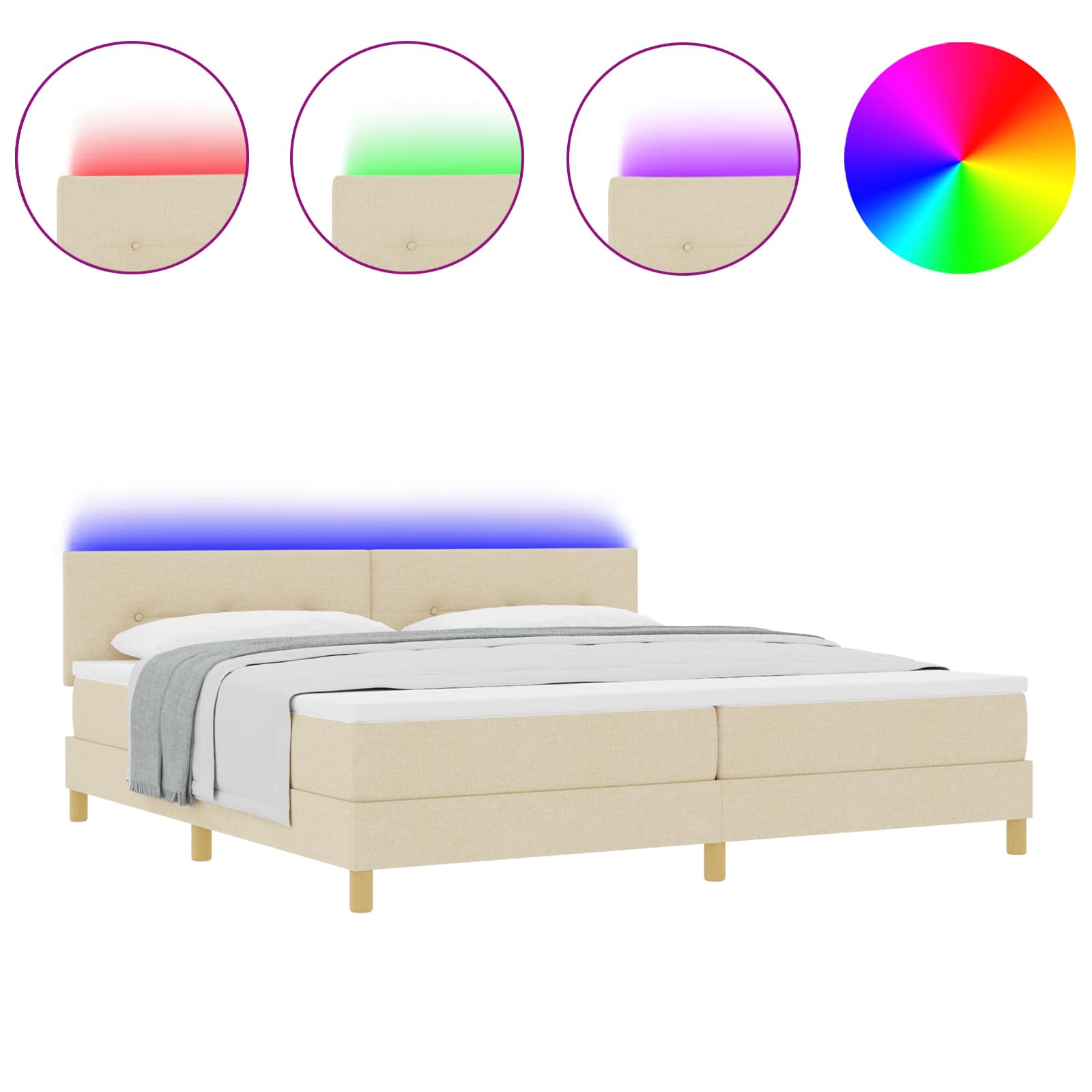 LED Box Spring Voodi madratsiga peaga cream 200 x 200 cm kangas