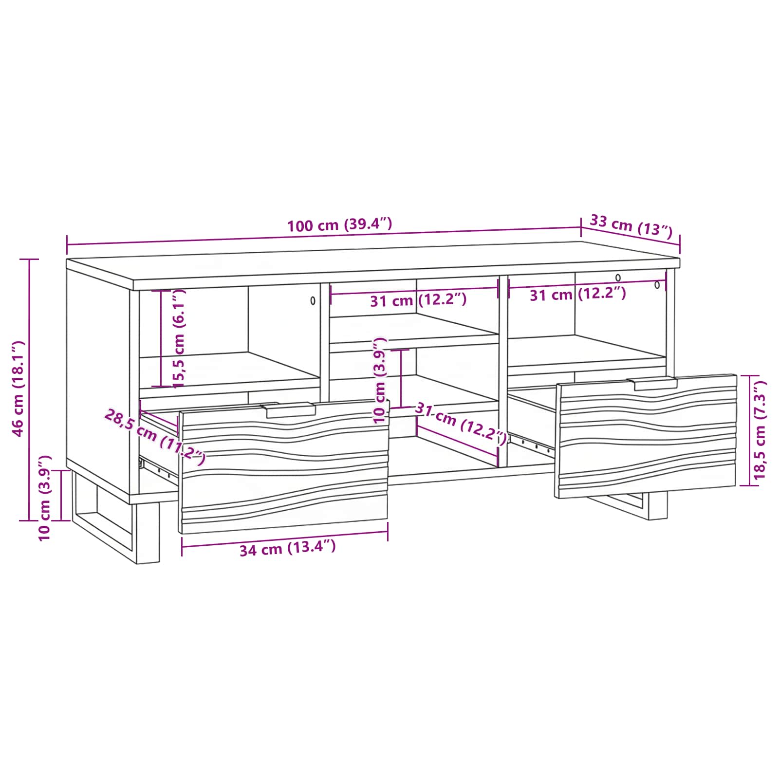 - Üldmõõtmed: 100 x 33 x 46 cm (P x L x K)
