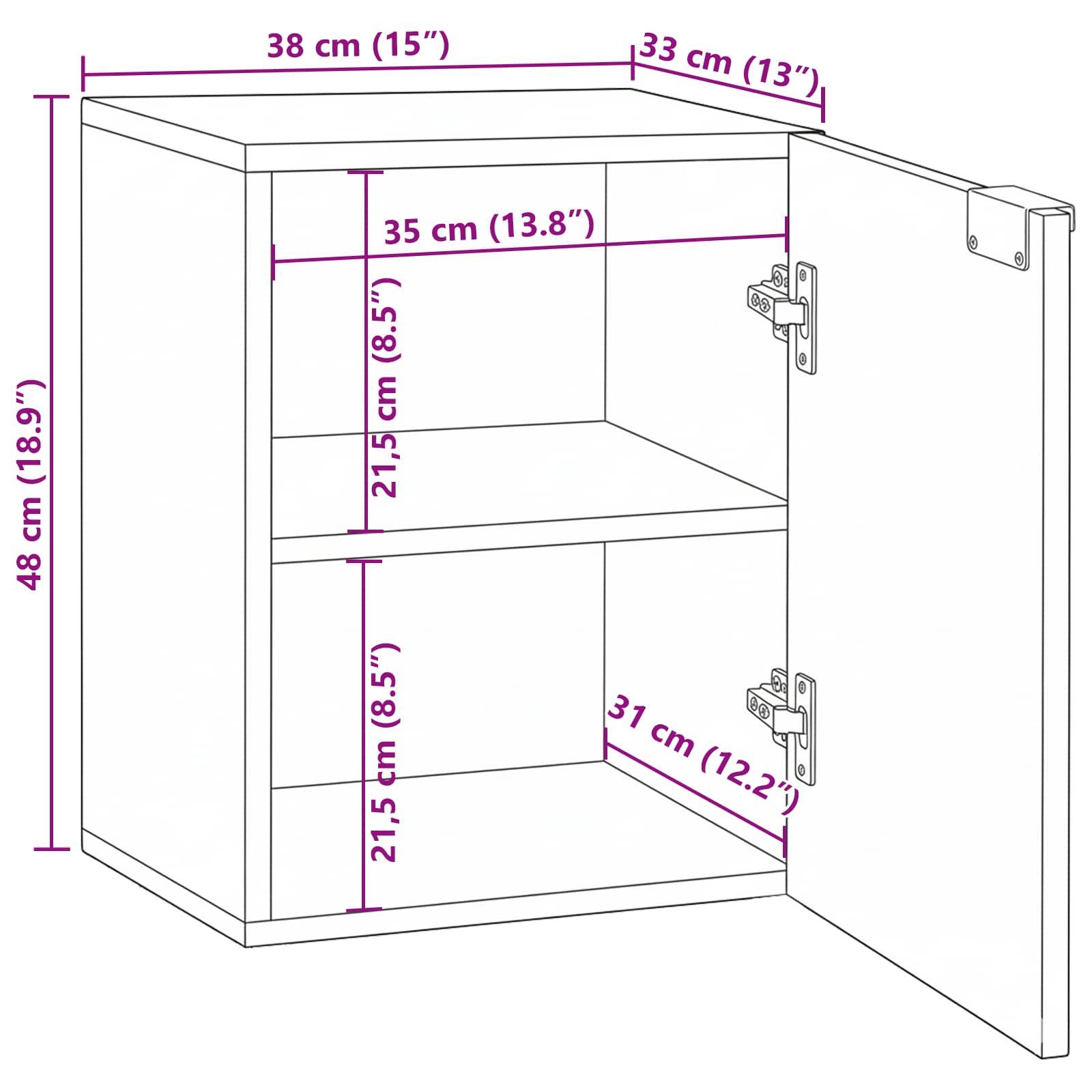 - Üldmõõtmed: 38 x 33,5 x 48 cm (P x L x K)