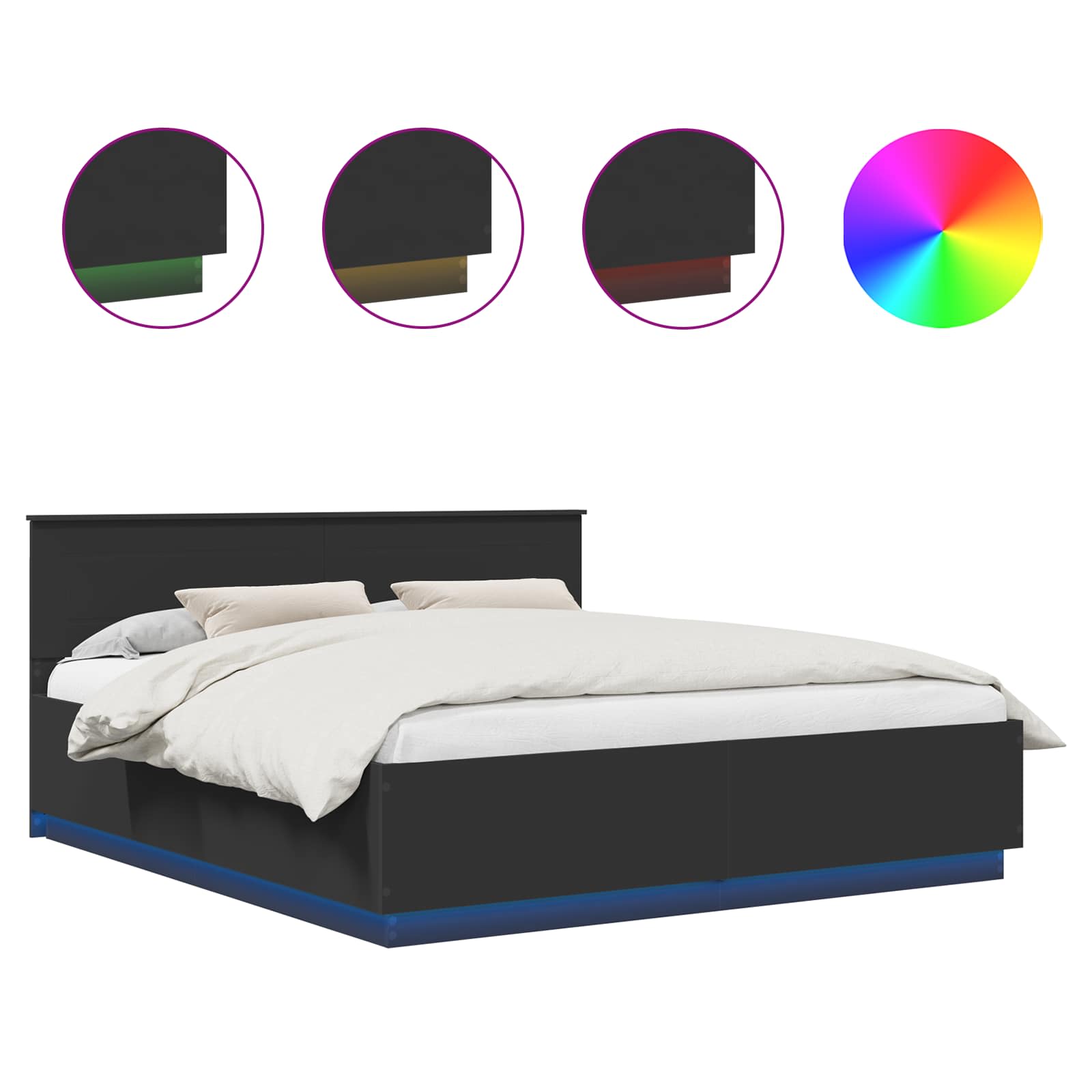 Voodi raam LED -ribatuledega peaga Must 180 x 200 cm Tehispuit